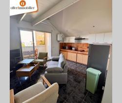 Il comprend 1 entrée, 1 séjour, 1 cuisine, 1 mezzanine, 1 salle d'eau avec WC, 1 varangue fermée d'environ 9m² et 1 place de parking.