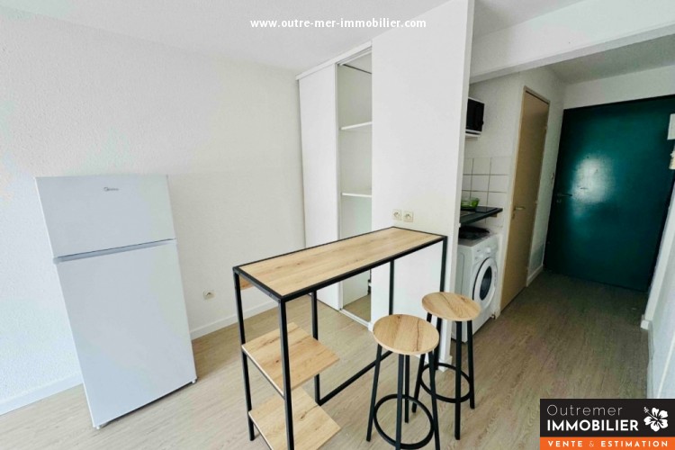 Studio meublé refait à neuf – Résidence Central Fac n°1 Studio meublé de 18 m², entièrement refait à neuf, situé au rez-de-chaussée de la résidence Central Fac n°1, à proximité immédiate de l'université. Le logement comprend : - canapé-lit, - table à manger avec chaises hautes, - machine à laver, - vaisselle, - kitchenette équipée, - salle d'eau avec WC Idéal pour étudiant, proche de la faculté, des commerces et des transports. - Plus d'informations et des vidéos ? Venez consulter notre site internet outre-mer-immobilier ou contactez moi : Florence DOÉ Négociateur(trice) Immobilier au 0692 01 28 80 - Vous avez également un bien à vendre ? Appelez-moi au 0692 01 28 80 pour une estimation gratuite ! ------------------------------------------Les informations sur les risques auxquels ce bien est exposé sont disponibles sur le site www.georisques.gouv.fr