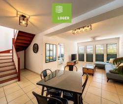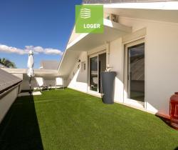 SAINT LEU Centre ville - Dernier étage pour cet appartement T3 meublé en Duplex de 65.56 m² (surface au sol de 111.92 m²) et une toiture-terrasse de 35.40 m² Comprenant , une entrée, un séjour avec clim et brasseur d'air LED, une télévision, une cuisine aménagée et équipée (plaque vitrocéramique, une hotte, un four, un réfrigérateur/congélateur, un lave vaisselle, un four à micro-ondes) , une chambre climatisée avec une salle d'eau, un wc séparé. A l'étage : un dégagement, une chambre climatisée avec placard, une buanderie avec un lave-linge et un séche-linge, une salle d'eau avec 2ème WC, une toiture-terrasse de 35.40 m² Un parking sous-sol Contactez Christophe Pottier 0693 05 50 05 Agence LOGER
