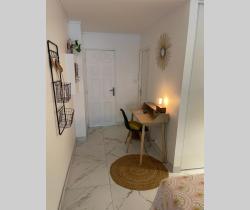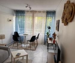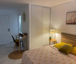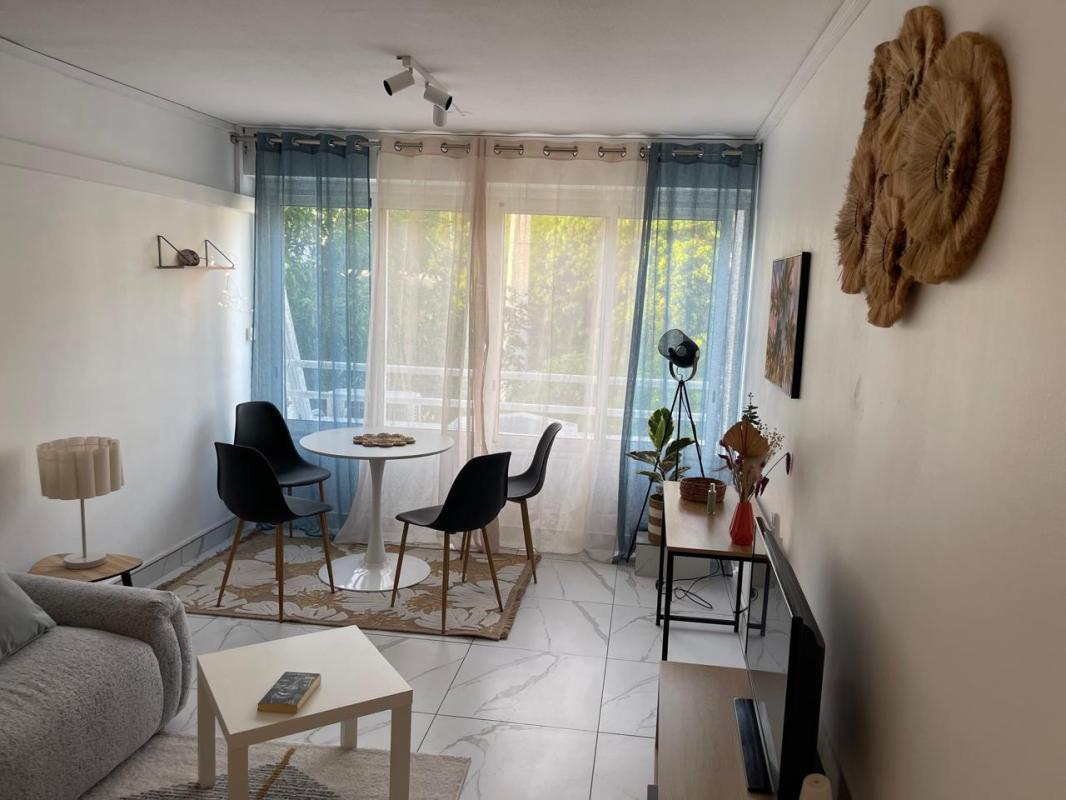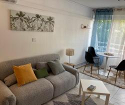 SAINT GILLES LES BAINS - Résidence Les Floralies, à deux pas des commerces et de la plage Studio de 37,18m² - Appartement MEUBLÉ refait à neuf, composé d'une entrée avec cuisine aménagée et équipée, une pièce principale avec un bureau, un espace couchage , lit , table de chevet, rangement et placard, un espace séjour avec canapé, tv, table à manger, appartement climatisée, salle d'eau et wc. (lave linge) Calme et sans vis à vis Place de parking Libre. AGENCE LOGER - 0692 21 22 47