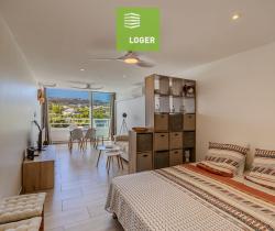SAINT GILLES LES BAINS - centre ville - Résidence Floralies Chemin de la Caverne SAINT GILLES LES BAINS - Proche centre ville -STUDIO Meublé de 35.83m² refait à neuf et joliment décoré. Composé d'une entrée avec cuisine aménagée et équipée (plaque, micro onde, réfrigérateur/congélateur, cafetière..) une grande pièce à vivre avec coin couchage et espace séjour climatisé et brasseur d'air, une salle d'eau avec wc. Pas de place de parking privative. Libre AGENCE LOGER - Christophe POTTIER