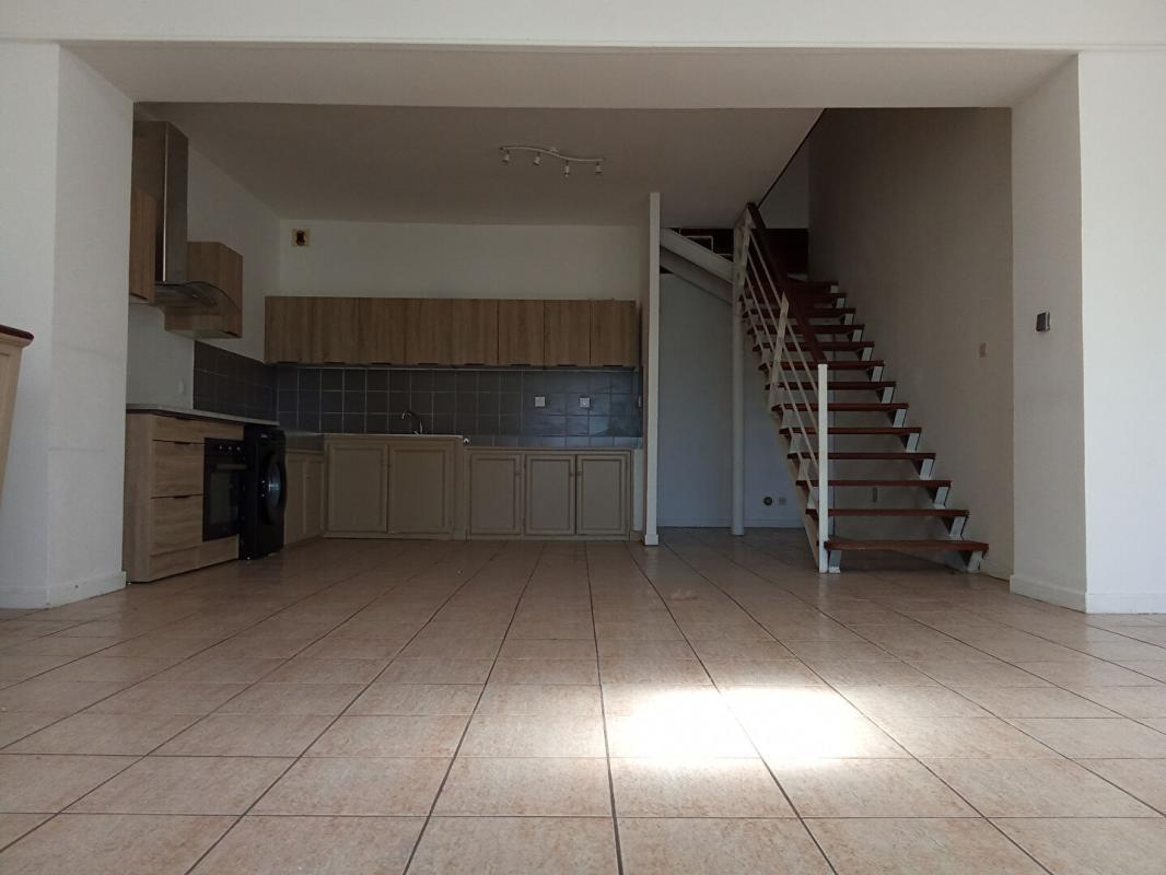 Centre-ville de St-Pierre : au coeur du centre, loue appartement DUPLEX de type T4 de 80m² de surface habitable comprenant une varangue, un séjour, une cuisine équipée, 3 chambres, 2 sdb et 2 wc séparés, et une place de parking. L'appartement se situe au 1er et dernier étage (sans ascenseur). L'immeuble comprend seulement 7 lots. Disponible immédiatement. Loyer hors charges : 1200 euros Provisions de charges (TEOM) : 30 euros Loyer charges comprises : 1230 euros Dépôt de garantie demandé : 1200 + 70 euros de bip = 1270 euros Honoraires d'agence à la charge du locataire : 1 040 euros