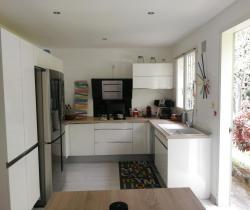 LNA est toujours là pour vous proposer de belles villas familiales, agréables à vivre. A quelques minutes de la Route du Littoral, dans un lotissement calme et verdoyant, cette villa F4 de plain-pieds saura vous ravir par ses prestations agréables : varangue couverte de près de 20m2 ouvrant sur la piscine sécurisée pour les plus petits, avec deck bois, séjour-cuisine agréablement aménagé, bien séparés de la partie nuit, desservie par un couloir avec placard, qui distribue 3 chambres climatisées, salle de bains avec baignoire et vasques, toilettes séparées. Vous serez charmé par le jardin tranquille, et cloturé, dont une partie parking bétonné permet de garer 2 à 3 véhicules, quelques fruitiers dont un leetchi, des bananiers, la sérénité d'un lotissement familial et agréable. Une exclusivité LNA, services Immobiliers sur-mesure !