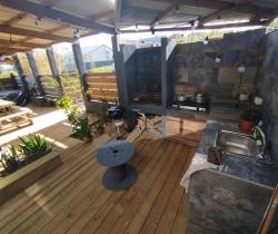 Maison chalet meublée de type F5 sur 2 niveaux de 94.64 m² de SH avec petite cour, terrasse, balcon. Elle comprend au RDC : une cuisine d'été, une terrasse couverte, une terrasse non couverte, 1 pièce aménageable, 1 buanderie, 1 cuisine ouverte sur une salle à manger, 1 séjour, 1 salle d'eau et wc. A l'étage : 2 chambres. La maison est équipée de fosse septique, chauffe-eau solaire. Disponible dès maintenant. - Loyer avec charges (eau, edf ) : 1200.00 € - Dépôt de garantie : 2 mois de loyer - Honoraires de location : 1230.00 € - (10 €/m² : visites, établissement du bail....3€/m² : état des lieux) ORPI MVS : 02.62.51.74.74