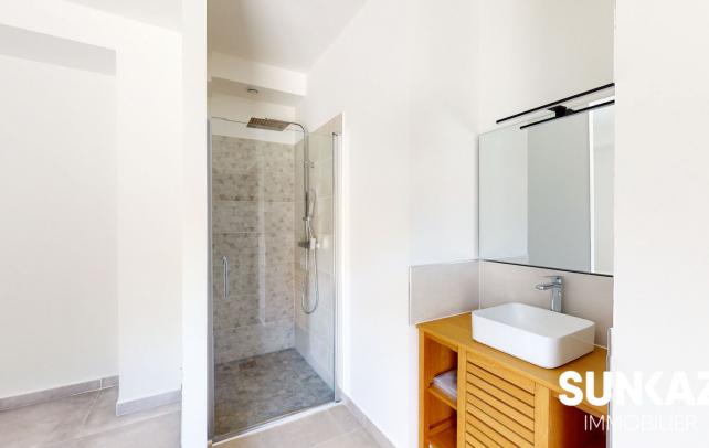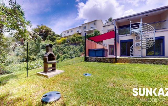 Etang Salé - route des Canots - 1 500m du centre ville - 112 m d'altitude - Surface totale 167m² Louez cette maison de ville moderne située dans un écrin de verdure. Elle dispose d'une cuisine ouverte sur le séjour et la spacieuse varangue qui donne accès au rez de jardin au niveau inférieur. Le hall d'entrée de la maison permet de bénéficier d'un espace de rangement à aménager au gré de vos besoins. Les chambres au niveau inférieur sont toutes orientées vers le jardin et la suite parentale est située à proximité du jacuzzi. Cet espace de détente est équipé d'une toile d'ombrage et d'un store d'intimité. Le jardin paysagé (arrosage automatique) accueille un barbecue et permet d'accéder à la forêt par un portillon. Les chambres sont climatisées, vous disposerez de 2 wc, 2 salles de douche, 2 places de parking, portail télécommandé, lieux sécurisés. Une participation mensuelle de 80Euro sera demandée pour l'entretien du jardin. Loyer 1 700Euro - Dépôt de garantie 1 700 Euro 890 Euro TTC d'honoraires à la charge du locataire au titre des honoraires de visite, de constitution de dossier, de rédaction du bail ainsi que pour l'état des lieux d'entrée. Pour tous renseignements complémentaires, contactez SUNKAZ au 0262 490 490.