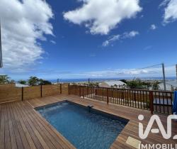 La Plaine-Saint-Paul. 14, Rue des Dahlias. Au calme, à environ 243m d'altitude, magnifique vue mer panoramique, sur un terrain clôturé de 351 m² environ, au calme dans un quartier résidentiel, une villa R+1 construite en 2022, de 119 m² environ habitable, 3 places de parking en enfilade. La maison dispose de 4 chambres dont une suite parentale avec dressing et SDE douche à l’italienne au RDC et à l’étage, 3 belles chambres, une SDE et un espace bureau. 1 WC à chaque étage. Au RDC, la maison dispose d’un grand séjour de 27 m² environ et d’une cuisine aménagée de 11 m² environ, le tout donnant sur une varangue de 13 m² environ, le deck en bois exotique et la piscine. De petites cours extérieures complètent ce bien. Opportunité de location exceptionnelle et très rare dans le secteur pour cette très belle villa!!!