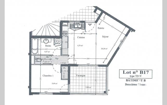 cuisine américaine, un chambre avec placard, une salle de bains, un WC et une varangue de 9,90 m². Ce bien comporte également un emplacement de stationnement à l'extérieur.