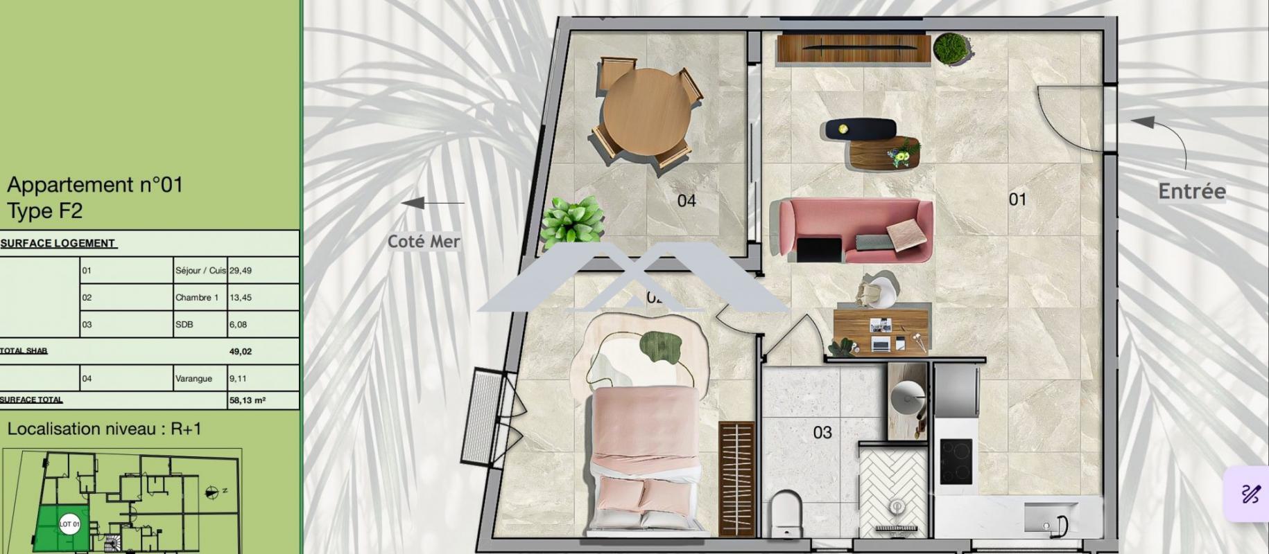 MAXImmo vous propose ce programme immobilier d'exception (vente en Vefa) situé en centre ville d'étang Salé les Hauts , résidence haut de gamme , intimiste ,moderne et bénéficiant de toutes les garanties (biennale et décennale). Proche toutes commodités , à 8 minutes de la plage, à moins de 5 minutes de la voie rapide ,altitude idéale. Superbe appartement T2 avec varangue, spacieux (chambre de 13.45m²,séjour ouvert sur cuisine 33m²) et confortable avec place de parking, garantissant un excellent confort thermique respectueux de l'environnement. Honoraires à charge vendeur TTC Mandat n° 13 119 LOT 1 Réseau MAXImmo - Pour plus de renseignements contactez Ingrid au 06 92 92 57 39 ou par mail à [email protected] Plus d'informations et consultation de nos tarifs sur www.maximmo.re Les informations sur les risques auxquels ce bien est exposé sont disponibles sur le site Géorisques : www.georisques.gouv.fr' Honoraires à la charge du vendeur. Dans une copropriété de 14 lots. Aucune procédure n'est en cours. Non soumis au DPE. Les informations sur les risques auxquels ce bien est exposé sont disponibles sur le site Géorisques : georisques.gouv.fr. Votre conseiller MAXImmo : Ingrid FRANCE Agent commercial (Entreprise individuelle)