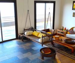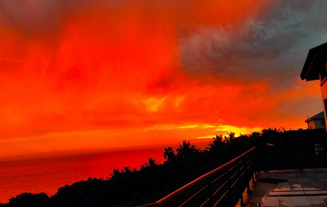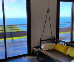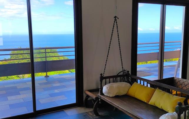 Une grande suite parentale lumineuse donnant sur la terrasse et l'exceptionnelle vue océan pour admirer les couchers de soleil qui s'y reflètent.