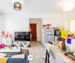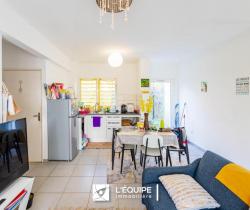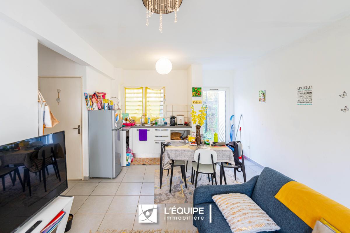 L'EQUIPE IMMOBILIERE REUNION vous propose à la vente cet appartement T2 avec terrasse en rez de jardin, d'une surface utilse de 50 m2 et de deux jardins privatifs de 60 m2. L'appartement est composé d'une grande pièce à vivre (séjour, cuisine américaine), d'une grande chambre, d'une salle d'eau et d'un wc séparé. Un emplacement de parking sécurisé et privatisé. Cette résidence sécurisée, située à la Technopole est proche de tous commerces, écoles, collége et quatre voies. Les parties communes verdoyantes sont entretenues, calme et tranquillité sont de rigueur. Cet appartement est actuellement loué à 625 EUR. Ce bien vous est proposé par Mr Gilbert LHOSTIS (NoRSAC : 408 945 830), votre interlocuteur privilégié pour cette annonce, n'hésitez pas à le contacter pour plus d'informations au O6 93 99 08 39. Les informations sur les risques auxquels ce bien est exposé sont disponibles sur le site Géorisques : www.georisques.gouv.fr 'Les informations sur les risques auxquels ce bien pourrait être exposé sont disponibles sur le site Géorisques: www.georisques.gouv.fr'Nous vous invitons à consulter notre site internet L'EQUIPE IMMOBILIERE REUNION pour effectuer une visite virtuelle de ce bien.