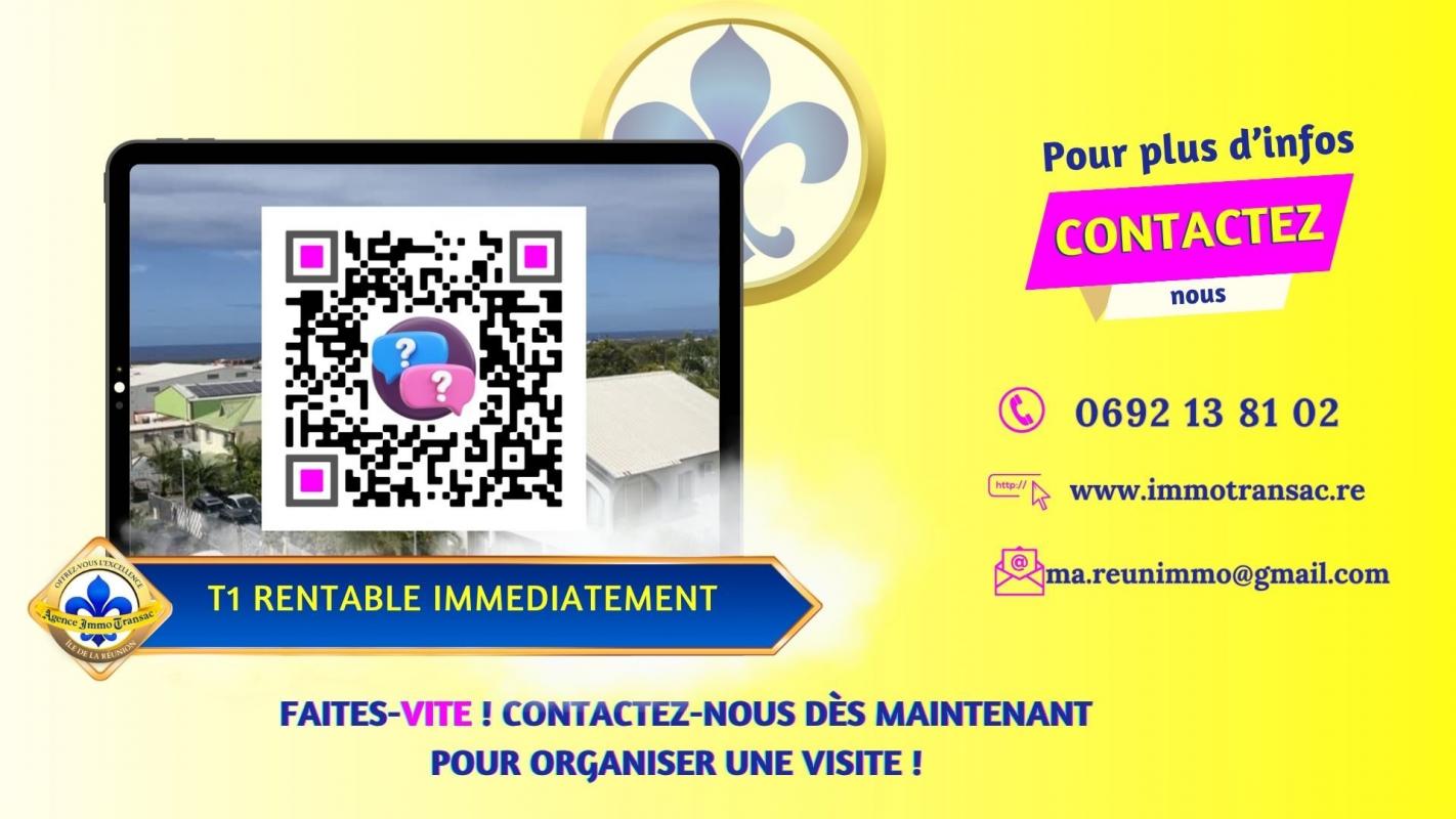 En exclusivité, sur SAINTE-CLOTILDE, dans la résidence BLUE BAY, au calme, vue mer, un investissement de qualité assuré: Découvrez cet APPARTEMENT vendu meublé de type T1 situé au 3e étage, idéal premier investissement locatif parfaitement agencé pour un confort de vie au quotidien : . LOCALISATION PRIVILÉGIÉE : Situé à 5 minutes à pied de l'université de la Réunion à Sainte-clotilde, cet appartement de 19 m² habitable avec terrasse vue mer vous séduira par ses prestations et son cadre de vie privilégié. .Ce bien entièrement meublé se compose de: ? d'un espace bureau une kitchenette entièrement équipée ouverte sur le séjour climatisé un séjour donnant accès à une agréable varangue un coin chambre avec placards wc et salle d'eau fonctionnelle Situé dans une résidence de bon standing avec ascenseur, ce logement est idéal pour un premier un investissement locatif de qualité. ? Une localisation recherchée, une belle exposition, calme, une résidence entretenue et sécurisée. Charges de copropriété de 141 €/ trimestre, fond de travaux alur: 6,59 €/ trimestre. Taxe foncière de 704 €. Bail en cours. Loyer: 580 € TTC. ? CONTACTEZ-MOI POUR VISITER CET APPARTEMENT SITUÉ À SAINTE-CLOTILDE ?? ?? 0692 13 81 02 Adeline MOUILLA JISTA - RSAC 841495518. ? [email protected] Les informations sur les risques auxquels ce bien est exposé sont disponibles sur le site Géorisques : www.georisques.gouv.fr PRIX : 83 385 € Les honoraires de vente sont à la charge du vendeur. Mandat n°1020. Annonce non soumise au DPE. Biens soumis au régime de la copropriété. Pas de procédure en cours. La copropriété comprend lots, dont appartements. Honoraires à la charge du vendeur. Dans une copropriété de 355 lots. Quote-part moyenne du budget prévisionnel 557 €/an. Aucune procédure n'est en cours. Non soumis au DPE. Les informations sur les risques auxquels ce bien est exposé sont disponibles sur le site Géorisques : georisques.gouv.fr. Votre conseiller Agence IMMO TRANSAC : Adeline MOUILLA Agent commercial (Entreprise individuelle)