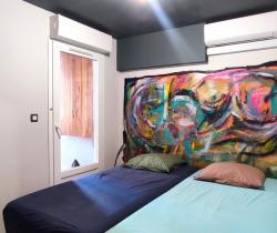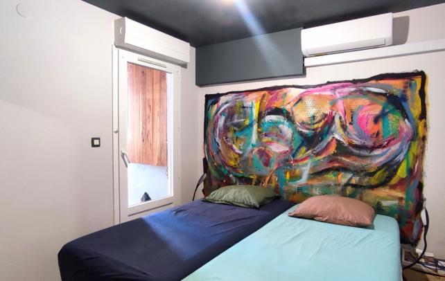 Situé au RDC surélevé, il comprend une entrée sécurisée, une cuisine équipée ouverte sur l'espace séjour, une terrasse, deux chambres climatisées, une salle d'eau et un WC indépendant.