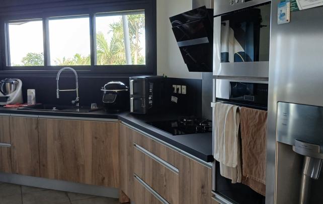 iad France - Patricia Denoual vous propose: Située à l’est de Saint-Joseph, à VINCENDO et à seulement 130 m d’altitude, cette maison d’architecte bénéficie d’un climat doux toute l’année et d’un accès rapide aux commerces, services, à deux pas des écoles et du front de mer — une adresse idéale pour allier confort et tranquillité