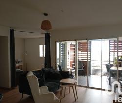 iad France - Huguette Leperlier vous propose: SAINT-GILLES LES BAINS à 5mn DU CENTRE VILLE, VENEZ DÉCOUVRIR CE TRÈS BEL APPARTEMENT T3/4 EN SOUPLEX D'ENVIRON 70m2, SITUÉ AU 1er ÉTAGE, ELLE EST COMPOSÉ AU RDC D'UN BOX FERMÉ DE 15m2 ET D'UNE CHAMBRE.