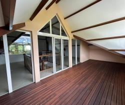 Coup de cœur assuré pour ce superbe duplex de 242m2 utiles, en parfait état, à 5 minutes du CHU !!! Entièrement rénové en 2025, ce très grand appartement de 5 pièces principales comprend : - au RdC : un immense hall d'entrée, 3 chambres dont une suite parentale avec dressing et salle d'eau, une varangue vue montagnes, une buanderie avec sa loggia, une salle d'eau et des WC séparés - à l'étage : une très grande pièce de vie avec sa cuisine équipée, de 45m2 et une très belle hauteur sous plafond, un cellier, des WC et 2 grandes varangues de presque 30m2 chacune, avec, au choix, vue sur les montagnes ou sur l'océan. En plus de tous ces avantages, cet appartement possède de nombreux rangements, un chauffe-eau solaire et 3 places de parking. Situé dans une petite copropriété de 15 logements et un beau jardin, les charges sont de 3291€ annuels. Contactez nous vite pour visiter de bien affiché au prix de 578000€ FAI, honoraires à la charge du vendeur. Référence agence : 0000