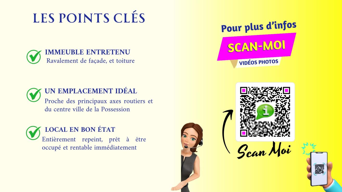 Au coeur du centre-ville de La Possession, au sein d'un immeuble professionnel de référence, découvrez ce local professionnel de 202 m², entièrement rénové, offrant un cadre de travail haut de gamme et immédiatement opérationnel. L'immeuble sur 4 niveaux avec ascenseur, accueille des professionnels de santé, cabinets médicaux et institutions, garantissant un environnement sérieux, structuré et valorisant. Situé au premier étage, ce local entièrement climatisé se distingue par une distribution optimale et des volumes fonctionnels. Il comprend : o 7 bureaux indépendants o espace d'accueil o un dégagement o deux sanitaires o une salle de réunion o une salle de soins Une cave dédiée à l'archivage ainsi qu'une place de stationnement privative complètent ce bien. ? Local libre de toute occupation ? Rénovation récente ? Excellent potentiel locatif ? Idéal professions libérales, médicales ou investissement patrimonial Un bien rare, alliant emplacement stratégique, qualité des prestations et rentabilité, au sein d'un secteur recherché. ? CONTACTEZ-MOI POUR VISITER CE LOCAL SITUÉ À LA POSSESSION ?? ?? 0692 13 81 02 Adeline JISTA - RSAC 841495518. ? [email protected] Les informations sur les risques auxquels ce bien est exposé sont disponibles sur le site Géorisques : www.georisques.gouv.fr PRIX : 450 000 € Les honoraires de vente sont à la charge du vendeur. Mandat n° 1076. Annonce non soumise au DPE. Charges de copropriété de 2300 €/an. Taxe foncière de 5 200€ *(copropriété en cours de division, côte part estimée). Libre de toute occupation 1 Parking sécurisé. Biens soumis au régime de la copropriété. La copropriété comprend 12 lots, dont 4 locaux, 4 parkings, 4 caves .Pas de procédure en cours. Honoraires à la charge du vendeur. Dans une copropriété de 12 lots. Aucune procédure n'est en cours. Non soumis au DPE. Les informations sur les risques auxquels ce bien est exposé sont disponibles sur le site Géorisques : georisques.gouv.fr. Votre conseiller Agence IMMO TRANSAC : Adeline MOUILLA Agent commercial (Entreprise individuelle)