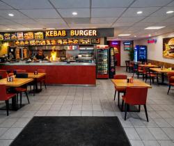 Grande vitrine sur le devant donnant sur un grand parking et un grand visuel.