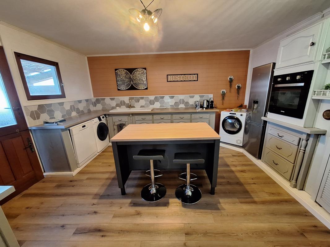 Grande maison F4 de 185 m2 sur deux niveaux Grand séjour cuisine de 59 m2 avec cheminée, véranda de 35 m2, 3 chambres dont une suite parentale de 18,5 m2 avec SDE. Idéalement placée proche des commodités (école, supermarché..) Double vitrage, chauffe eau solaire 2 places de parking dans la propriété Référence agence : 6505