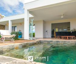 COUP DE COEUR Élégante villa contemporaine avec piscine à Sainte-Luce Nichée dans un environnement paisible et recherchée de Sainte-Luce, cette villa récente de plain-pied d'environ 123 m2 séduit immédiatement par son architecture moderne, ses volumes généreux et son art de vivre tourné vers l'extérieur. Dès l'entrée, la pièce de vie baignée de lumière impressionne par sa belle hauteur sous plafond et son atmosphère chaleureuse. La cuisine contemporaine, parfaitement équipée et dotée d'un îlot central, s'intègre harmonieusement à l'espace salon-séjour et invite aux moments de partage. Les larges ouvertures prolongent naturellement la maison vers une vaste terrasse couverte, véritable pièce de vie supplémentaire, offrant une vue apaisante sur la piscine et la mer. Le jardin arboré offre un cadre idéal pour savourer le calme et profiter du climat tropical en toute intimité. L'espace nuit propose trois chambres confortables, dont une suite parentale avec dressing, et une autre entièrement indépendante, pensées pour offrir confort, fonctionnalité et sérénité. Les prestations sont soignées, les matériaux de qualité et l'ensemble parfaitement entretenu. À l'extérieur, le jardin paysagé et la piscine créent une ambiance résolument vacances, avec une ouverture sur la nature et une vue mer qui renforcent le sentiment d'évasion. Les atouts majeurs : Villa récente de plain-pied Prestations modernes et finitions soignées Piscine au sel Jardin arboré et paysagé Espaces de vie lumineux et ouverts Environnement calme et recherché Proximité des plages et commodités de Sainte-Luce Sous-sol pour rangement Maison entièrment isolée Ce bien sera libre au 01/12/2026 et vous est proposé par Mme Sophie SCHAMBER (NoRSAC : 2019AC00167), votre interlocutrice privilégiée pour cette annonce, n'hésitez pas à la contacter pour plus d'informations au O6 96 96 36 73. Les informations sur les risques auxquels ce bien est exposé sont disponibles sur le site Géorisques : www.georisques.gouv.fr 'Les informations sur les risques auxquels ce bien pourrait être exposé sont disponibles sur le site Géorisques: www.georisques.gouv.fr'Nous vous invitons à consulter notre site internet L'EQUIPE IMMOBILIERE REUNION pour effectuer une visite virtuelle de ce bien.