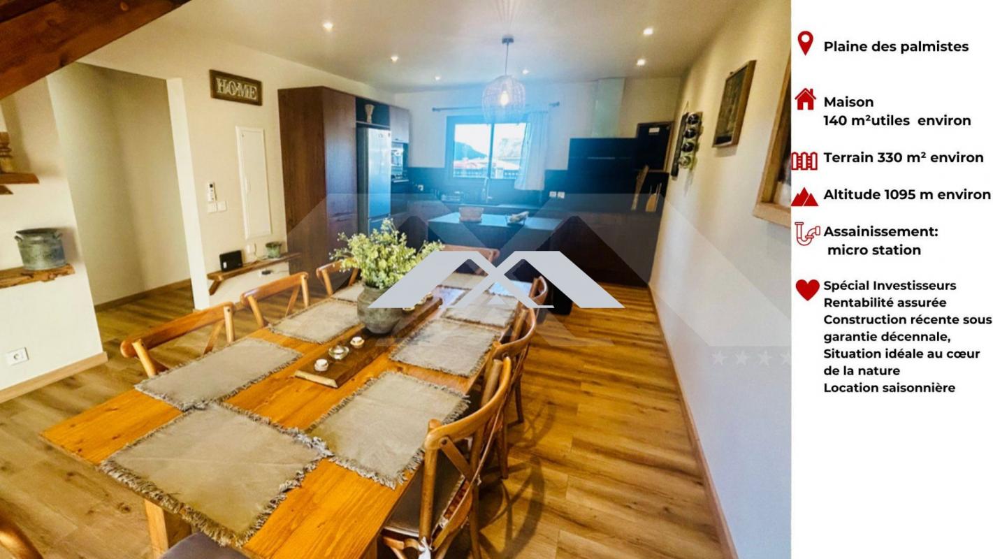 Vous cherchez un investissement rentable, dans une destination touristique reconnue et appréciée, ce bien est fait pour vous. MAXImmo vous propose cette maison mitoyenne d'un côté, avec un accès indépendant, construite en 2023 (bénéficiant de toutes les garanties légales) est idéalement située à La Plaine des Palmistes. Bénéficiant de 3 chambres et pouvant accueillir jusqu'à 10 couchages permettent d'optimiser cet écrin de paix, chaleureux et convivial. Les locations sont régulières et appréciées, ce qui conforte la qualité de l'investissement. A VISITER ABSOLUMENT !!! Prix TTC et Honoraires à charge vendeur TTC Mandat n° 12867 Réseau MAXImmo - Pour plus de renseignements contactez Joël au 06 92 36 57 29 ou par mail à [email protected] Plus d'informations et consultation de nos tarifs sur www.maximmo.re Les informations sur les risques auxquels ce bien est exposé sont disponibles sur le site Géorisques : www.georisques.gouv.fr' Honoraires à la charge du vendeur. Non soumis au DPE. Les informations sur les risques auxquels ce bien est exposé sont disponibles sur le site Géorisques : georisques.gouv.fr. Votre conseiller MAXImmo : Joël DE FREITAS Agent commercial (Entreprise individuelle) RSAC 88939428400042 RCP CA000000317370 Allianz