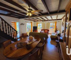 Rez-de-chaussée : Un grand salon-salle à manger, une cuisine séparée, 2 chambres, une salle de bain complète (baignoire + douche), et des WC indépendants.