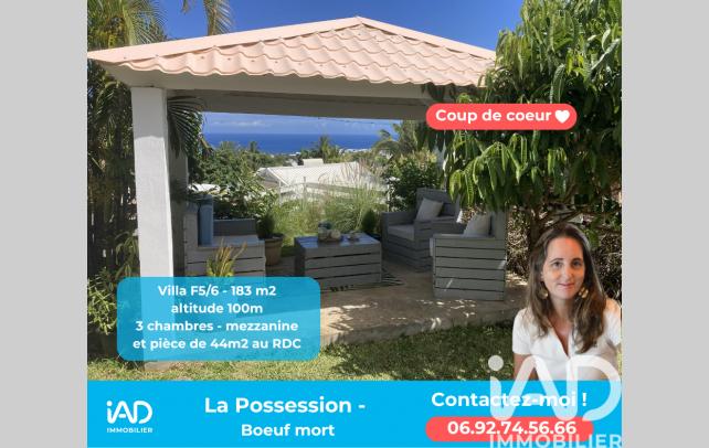 iad France - Audrey Guiet vous propose: OPPORTUNITÉ ! : Lumineuse villa familiale de type F5/6 de 183m2 à La Possession - Quartier Boeuf mort - en lotissement avec jardin, kiosque, cuisine extérieure, et grande buanderie transformable de 44m2 - 100m altitude