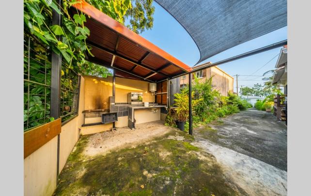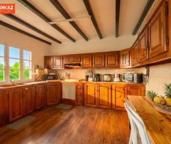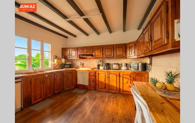 Maison familiale avec jardin et cuisine extérieure Au Quatorzième, cette construction de plain-pied s'étend sur 113 m² dans un quartier résidentiel à proximité immédiate du lycée. Les commerces se situent à cinq minutes de trajet. L'agencement distribue trois chambres, un séjour de 24 m², un salon de 13 m² et une cuisine aménagée. Deux varangues prolongent l'espace habitable vers l'extérieur. La parcelle de 490 m², délimitée et plantée, comprend une cuisine extérieure. Édifiée en 1990, la maison présente un bon état d'entretien. Copropriété composée de 2 lots. Honoraires à la charge du vendeur. Les informations sur les risques auxquels ce bien est exposé sont disponibles sur le site géorisques : www.georisques.gouv.fr. Pour organiser votre visite ou plus d'information : +262 262 490 490.