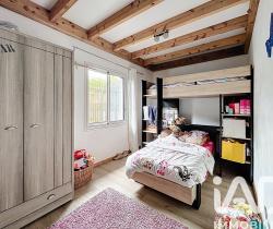 À l’étage, les combles ont été aménagés pour accueillir deux chambres supplémentaires, idéales pour une famille, des invités ou un espace bureau.