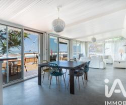 Érigée sur une parcelle de 651m2 joliment arborée, au calme absolu et faisant face au lagon, cette superbe maison d'une superficie de 120m2 environ, est entièrement de plein pieds avec un accès PMR depuis le garage.