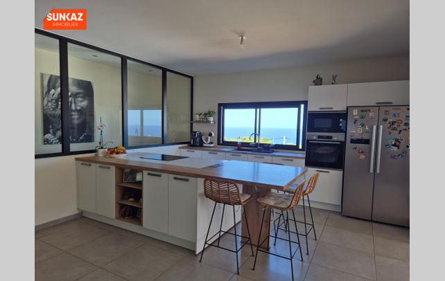 Vue océan dominante et piscine, juste sous l'hyper centre La vue s'impose dès le premier regard. L'océan en ligne d'horizon, visible depuis les espaces de vie, accompagne chaque moment de la journée. Une maison récente, ouverte sur l'extérieur, à quelques minutes seulement de l'hyper centre. Construite en 2020, cette maison développe environ 155 m² (135m2 habitables). La pièce de vie est spacieuse et lumineuse, largement ouverte vers l'extérieur et la mer. La cuisine, moderne et bien pensée, s'intègre naturellement à l'ensemble. La maison dispose de 4 chambres, dont une suite parentale. Les volumes sont confortables, les lignes sobres et l'entretien soigné. Chauffe-eau solaire et installation photovoltaïque complètent les prestations. À l'extérieur, le terrain d'environ 418 m² accueille une piscine au sel, à l'abri des regards. Une varangue prolonge la maison et offre une vue dégagée, avec cette sensation permanente d'espace et de hauteur, au-dessus de la ville. La situation est un vrai atout : la maison se trouve juste sous l'hyper centre de Petite-Île, avec un accès rapide aux commodités tout en conservant le calme et la vue. Les honoraires sont uniquement à la charge du vendeur. Les informations sur les risques auxquels ce bien est exposé sont disponibles sur le site géorisques : www.georisques.gouv.fr. Pour organiser une visite ou obtenir plus d'informations, contactez l'agence au +262 262 490 490.