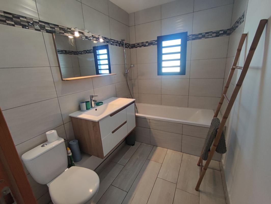 Découvrez cette superbe maison récente F4 à étage d'environ 90m² habitables, édifiée sur une généreuse parcelle offrant un potentiel unique, entièrement clôturée Idéalement située dans le secteur centre de Petite-Île, cette maison vous assure un cadre de vie privilégié. Vous êtes à seulement 3 minutes du centre-ville et de toutes les commodités, tout en profitant d'un lieu alliant confort, espace et vue exceptionnelle. Aménagements intérieurs : Au rez-de-chaussée, vous découvrirez un spacieux séjour lumineux ouvert sur une cuisine moderne entièrement équipée, créant un espace de vie convivial et chaleureux avec accès direct à la terrasse et sa magnifique vue mer. Ce niveau inclut également une très belle suite parentale avec rangements, douche italienne et double vasque. On y trouve également un WC séparé. À l'étage, deux belles chambres vous attendent, dont une bénéficiant d'une vue imprenable sur l'océan et d'un dressing. Une très belle salle de bain avec baignoire et WC est également présente, idéale pour vos moments de détente. Vendue meublée, elle est prête à vous accueillir immédiatement ou à être intégrée à un projet locatif. Elle est équipée d'un chauffe-eau solaire avec résistance, ainsi que de panneaux photovoltaïques, garantissant une quasi-autonomie en électricité. Un bien rare sur le secteur, idéal pour une famille à la recherche de confort, d'espace et d'une magnifique vue mer. Contactez-nous sans tarder pour planifier votre visite et saisir cette opportunité exceptionnelle. Référence agence : 6713