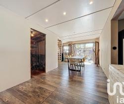 Le salon s'ouvre sur une terrasse offrant un espace extérieur idéal pour se détendre en famille ou entre amis et une piscine pour se rafraîchir les journées ensoleillées.