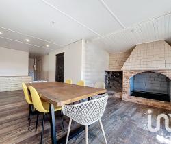 La cuisine équipée ouverte sur une grande salle à manger avec son coin au feu de bois pour des moments conviviaux autour d'un bon repas.
