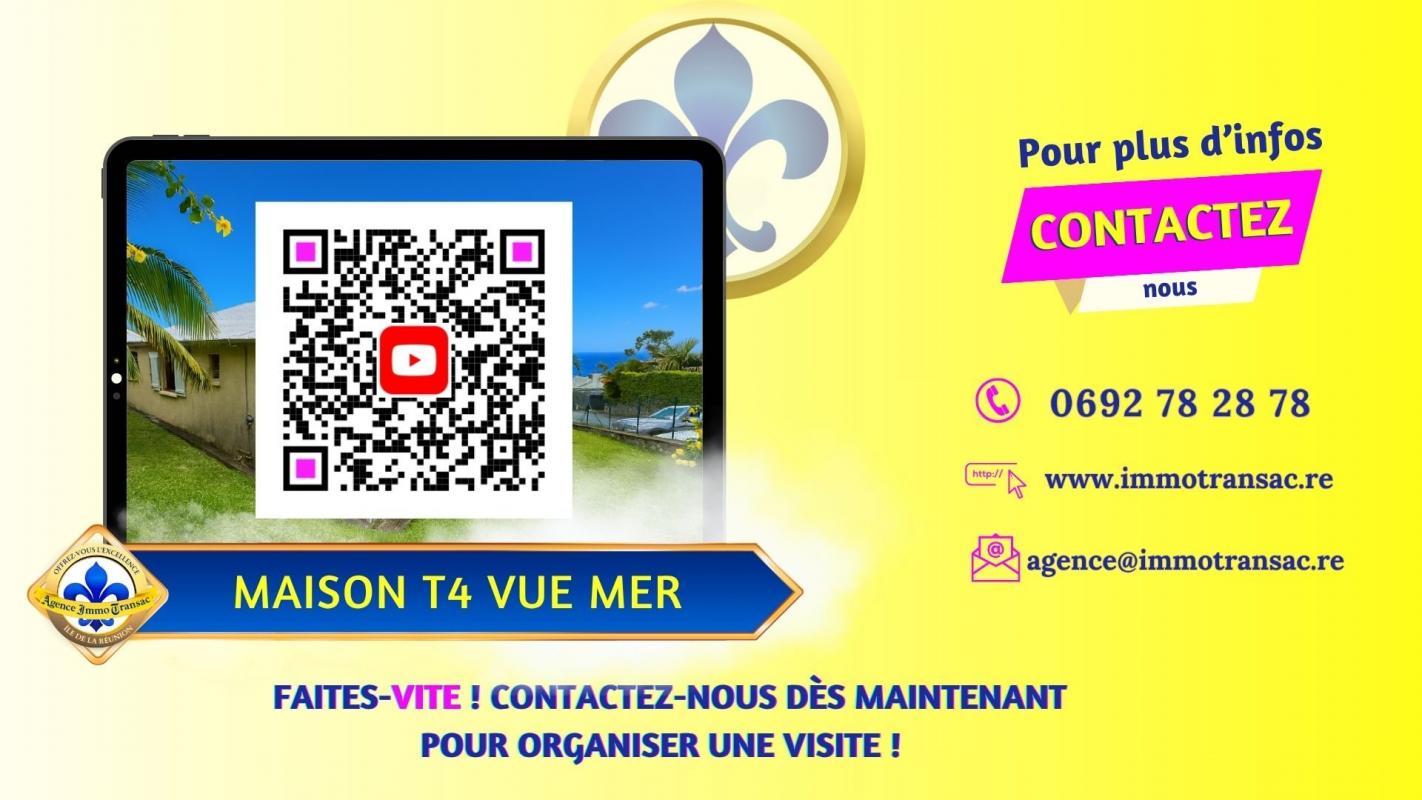 Vous cherchez une VILLA à vendre à SAINT-DENIS LA MONTAGNE avec vue mer à moins de 430 000 € ? . Cette villa de plain-pied de 96 m² sur 523 m² de terrain bénéficie de : - VUE MER dégagée depuis séjour et varangue. - 3 CHAMBRES avec rangements. - VARANGUE couverte de 16 m² face océan. - GARAGE DOUBLE en sous-sol de 42 m². - CHAUFFE-EAU SOLAIRE déjà installé. . Explorez cette villa dès maintenant en SCANNANT LE QR CODE dans les photos pour un meilleur aperçu. . Pourquoi cette VILLA située dans un LOTISSEMENT RÉSIDENTIEL DE LA MONTAGNE mérite votre attention ? . VUE MER PANORAMIQUE DÉGAGÉE : La vue mer dégagée depuis le séjour de 25 m² et la varangue couverte vous offre un privilège rare dans ce secteur prisé de La Montagne. . ESPACE DE VIE CONVIVIAL LUMINEUX : La cuisine américaine aménagée s'ouvre sur le séjour créant plus de 35 m² d'espace de vie. L'ensemble donne directement sur la varangue couverte de 16 m². . CUISINE AMÉRICAINE MODERNE ÉQUIPÉE : Cuisine ouverte avec hotte, placards et plan de travail fonctionnel. Le cellier attenant optimise les rangements pour votre confort quotidien. . VARANGUE COUVERTE FACE OCÉAN : Véritable salon extérieur de 16 m² avec vue mer permanente. Parfait pour vos petits-déjeuners et soirées face au coucher de soleil. . TROIS CHAMBRES CONFORTABLES : La chambre principale de 12 m² avec rangements intégrés. Deux chambres supplémentaires de 10 m² idéales pour enfants ou bureau. . SALLE DE BAIN COMPLÈTE FONCTIONNELLE : Équipée d'une baignoire et vasque moderne avec rangements. WC séparé pour plus de praticité au quotidien familial. . GARAGE DOUBLE EN SOUS-SOL : Sous-sol de 42 m² pouvant accueillir 2 véhicules à l'abri. Espace supplémentaire disponible pour aménagement ou stockage. . TERRAIN CLÔTURÉ SÉCURISÉ ARBORÉ : 523 m² entièrement clôturés par mur bahut et grillage. Jardin arboré en pente offrant plusieurs espaces verts à exploiter. . LOTISSEMENT RÉSIDENTIEL RECHERCHÉ : Centre de La Montagne dans quartier calme et familial. Commerces, écoles et collèges accessibles en moins de 5 minutes. . BON ÉTAT GÉNÉRAL MINIMAL TRAVAUX : Construction 2001 en bon état, simple rafraîchissement cosmétique à prévoir. Chauffe-eau solaire installé pour économies d'énergie garanties. . RAPPORT QUALITÉ-PRIX EXCEPTIONNEL : Prix exceptionnel pour une maison avec vue mer dans lotissement prisé. Sous les prix du marché immobilier pour prestations équivalentes. . CONTACTEZ-NOUS dès maintenant pour découvrir tout le potentiel de cette villa ! Profitez de notre visite vidéo en SCANNANT LE QR CODE dans les photos pour un meilleur aperçu. . Vous avez le projet de VENDRE à l'île de La Réunion ? Découvrez notre Estimation en ligne Gratuite en 3 clics. . Grâce à notre Expertise Reconnue et notre Marketing Innovant, votre Agence Immobilière 974 vous aide à Vendre vite et Au Meilleur Prix. . Monsieur C. HOAREAU : 'Merci à Monsieur Pitou qui nous a accompagné pour l'achat de notre maison. Il a su être à notre écoute. Il a pris le temps de répondre à nos différentes questions.' . Offrez-vous l'excellence immobilière à La Réunion avec l'Agence Immo Transac. Votre Allié Immobilier Réunionnais. Honoraires à la charge du vendeur. Non soumis au DPE. Les informations sur les risques auxquels ce bien est exposé sont disponibles sur le site Géorisques : georisques.gouv.fr.