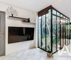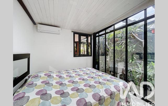 La maison principale de 119 m² comprend une pièce de vie baignée de lumière grâce à sa verrière, agrémentée d’un bassin à poissons créant une ambiance tropicale unique. Elle se compose également de deux chambres, un bureau, une salle d’eau, un cellier et une cuisine équipée ouverte.