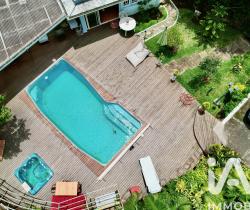 L'Espace Détente : Un vaste deck bois entoure une piscine au sel et un jacuzzi, parfaits pour la déconnexion.