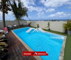 MAXImmo vous propose dans le secteur très prisé de la ligne Trovalet, à seulement 1 minute de toutes commodités notamment du centre Leclerc Les Terrass, cette élégante maison de 140 m² habitables conjuguant confort, modernité et intimité dans un cadre de vie privilégié. Nichée au calme absolu, au fond d'une impasse, elle séduit dès l'entrée par un vaste espace de vie de 50 m², baigné de lumière, comprenant un séjour convivial et une cuisine équipée Conforama aux lignes contemporaines. Depuis ces espaces, la clarté et l'ouverture sur l'extérieur créent une atmosphère chaleureuse et harmonieuse. La partie nuit se compose de quatre chambres, dont une suite parentale raffinée avec dressing sur mesure qui est climatisée, ainsi qu'une deuxième chambre bénéficiant du confort de la climatisation. Côté bien-être, une salle de bain spacieuse avec douche à l'italienne complète l'ensemble, tandis qu'un WC séparé assure la praticité au quotidien. Pensée pour la détente et les loisirs, la maison dispose d'une piscine au sel (profondeur de 1,40 m à 2 m) offrant une superbe vue mer, d'une possible salle de sport ou d'une dépendance, au choix, et d'une cuisine extérieure idéale pour recevoir. Les prestations sont remarquables : appareillages neufs, panneaux photovoltaïques 6 kW, garage, quatre stationnements privatifs, ainsi que des combles aménageables offrant un potentiel supplémentaire selon vos envies. L'ensemble est entièrement clôturé, garantissant sérénité et intimité. Enfin, vous apprécierez la qualité de vie qu'offre ce bien d'exception, qui est vendu tout meublée, avec une taxe foncière limitée à 1910 €. Un lieu rare, conjuguant prestations modernes, espaces généreux et vue sur la mer. À découvrir rapidement !!! Prix TTC et Honoraires à charge vendeur TTC Mandat n° 13 041 Réseau MAXImmo - Pour plus de renseignements contactez Arnaud au 06 92 79 23 66 ou par mail à [email protected] Plus d'informations et consultation de nos tarifs sur www.maximmo.re Les informations sur les risques auxquels ce bien est exposé sont disponibles sur le site Géorisques : www.georisques.gouv.fr' Honoraires à la charge du vendeur. Non soumis au DPE. Les informations sur les risques auxquels ce bien est exposé sont disponibles sur le site Géorisques : georisques.gouv.fr. Votre conseiller MAXImmo : Maaz DHALED Agent commercial (Entreprise individuelle)
