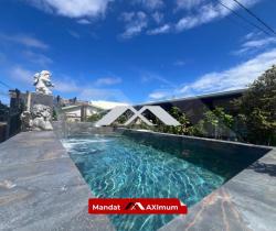 MAXImmo vous propose cette belle villa de type F6 d'une superficie d'environ 135 m², édifiée sur une parcelle d'environ 381 m² entièrement clôturée. Vous y trouverez 5 chambres, dont une parentale avec douche à l'italienne+wc + clim, 2 salles de baisn, 2 wc, un espace télé + clim, une belle cuisine équipée. Les chambres sont équipées de brasseur d'air. Maison très bien entretenue. Les extérieurs: abri de jardin, coin buanderie, coin rangement, une grande terrasse couverte équipée d'un espace cuisine, d'un bassin détente pour profiter en famille et entre amis. Possibilité de garer deux véhicules, chauffe au solaire. S'ajoute à ce bien, une dépendance d'environ 15 m² avec douche à l'italienne + wc et chambre. Au calme et dans un secteur proche de toutes commodités a 2 minutes du grand Leclerc . A visiter rapidement. Prix TTC et Honoraires à charge vendeur TTC Mandat n° 12668 Réseau MAXImmo - Plus d'informations et consultation de nos tarifs sur www.maximmo.re Les informations sur les risques auxquels ce bien est exposé sont disponibles sur le site Géorisques : www.georisques.gouv.fr' Honoraires à la charge du vendeur. Non soumis au DPE. Les informations sur les risques auxquels ce bien est exposé sont disponibles sur le site Géorisques : georisques.gouv.fr. Votre conseiller MAXImmo : Florent OLIVAR Agent commercial (Entreprise individuelle)