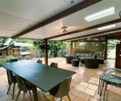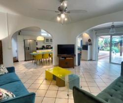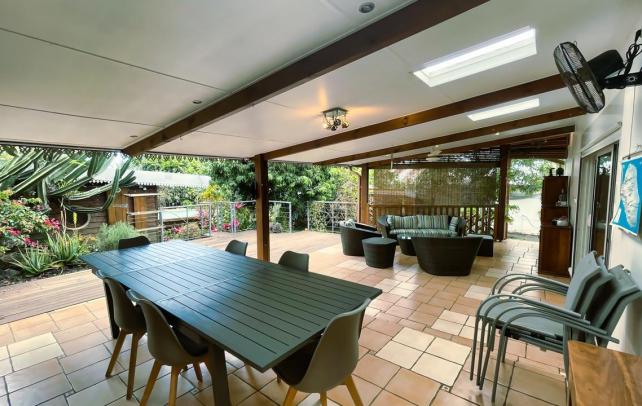 Vente d'une maison F5 spacieuse (185 m²) avec piscine et bungalow à Saint-Joseph. - À VENDRE : Maison spacieuse à Saint-Joseph, 97480 Découvrez cette charmante maison F5 de 185 m² habitables, idéalement située dans un quartier résidentiel paisible de Saint-Joseph. Ce bien immobilier se déploie sur deux niveaux, offrant un agencement fonctionnel et agréable pour toute la famille. Au rez-de-chaussée, vous serez accueilli par un salon lumineux qui mène à une cuisine aménagée et équipée, parfaite pour préparer vos repas en toute convivialité. Le séjour ouvert offre un espace de vie chaleureux, tandis que trois chambres confortables vous garantissent des nuits paisibles. Une salle de bains et un WC indépendant complètent ce niveau. Vous apprécierez également la varangue de 56 m², intégrant un coin cuisine et un espace cuisson, ainsi qu'une terrasse de 34 m², idéales pour profiter des journées ensoleillées. Les combles sont aménagés avec soin, comprenant un dégagement, une chambre supplémentaire, une salle de bains et un débarras, offrant ainsi un espace supplémentaire pour vos besoins. À l'extérieur, un bungalow de 20 m² entièrement aménagé vient compléter ce bien, avec une pièce de vie, un coin cuisine et une salle d'eau avec WC indépendant. La cour arborée de 810 m² est un véritable havre de paix, équipée d'abris de jardin, d'un abri pour deux-roues et d'une piscine hors sol en bois, parfaite pour se rafraîchir lors des chaudes journées d'été. La maison est également dotée de chauffe-eau solaires et de climatisations dans toutes les chambres, garantissant un confort optimal tout au long de l'année. Quatre places de stationnement sont disponibles pour vos véhicules. Située à proximité de commodités essentielles, vous trouverez des supermarchés tels qu'E. Leclerc et Carrefour Market à moins de 2 km, ainsi que plusieurs écoles et pharmacies à proximité. Ce bien rare allie confort, espace et praticité, idéal pour une vie de famille épanouie. Ne manquez pas cette opportunité unique d'acquérir une maison de qualité à Saint-Joseph. Honoraires à la charge du vendeur. Vous pouvez consulter les barèmes d'honoraires à l'adresse suivante : https://www.cjoint.com/c/ILfg7RCdeS4 . Les informations sur les risques auxquels ce bien est exposé sont disponibles sur le site Géorisques : https://www.georisques.gouv.fr Vente d'une maison F5 spacieuse (185 m²) avec piscine et bungalow à Saint-Joseph.