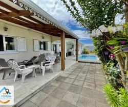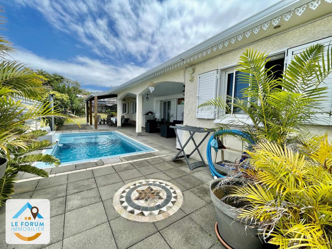 SAINT JOSEPH 97480 - N'attendez plus... VENEZ VISITER cette magnifique villa F5, de plain pied, implantée sur environ 800 m2 de terrain plat et clôturé. Située à 2 minutes du centre ville, la villa bénéficie de nombreux atouts qui ne vous laisseront pas indifférent. Côté jour, vous disposez d'un séjour chaleureux avec cuisine aménagée équipée communiquant sur une varangue d'environ 43 m2 depuis laquelle vous aurez un accès direct à la piscine. Le coin nuit offre 4 chambres spacieuses, 1 buanderie, 1 salle d'eau lumineuse et 1 WC. Garage d'environ 44 m2. Aucun vis à vis. Dans un quartier calme et agréable à vivre. Transports en commun à proximité - Aucun travaux à prévoir. Beau potentiel. UNE VISITE S'IMPOSE Ref 5454 Les informations sur les risques auxquels ce bien est exposé sont disponibles sur le site Géorisques : www.georisques.gouv.fr Les informations sur les risques auxquels ce bien est exposé sont disponibles sur le site géorisques : www.georisques.gouv.fr