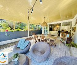 SAINT JOSEPH 97480 - N'ATTENDEZ PLUS... Venez visiter cette belle villa d'environ 210 m2 divisée en deux logements distincts située à 5 minutes du centre. Au 1er étage, la villa fait 129 m2. Ell est cozy et est parfaitement entretenue et fonctionnelle, bénéficie d'une cuisine équipée ouverte sur une charmante pièce à vivre donnant un accès direct à la varangue agréable d'environ 30,86 m2. Le coin nuit offre trois chambres confortables, 1 vaste salle de bains / salle d'eau ainsi qu'un bureau pour plus de fonctionnalités. Vous profiterez d'une piscine chauffée et d'un joli jardin arboré avec un accès direct depuis la varangue. Au rez de chaussée, un F3 entièrement équipé d'environ 81 m2 habitables se compose d'une belle cuisine d'environ 37,30 m2 - de deux grandes chambres et d'une salle d'eau avec WC. Idéal pour qui souhaite en faire de la location saisonnière. Bonne rentabilité locative en cours d'exploitation. Le tout implanté sur environ 1090 m2 de terrain. Cadre de vie fort agréable, jolie vue mer. Familiale, confortable et conviviale, cette villa saura vous séduire. Elle conviendra à une grande famille souhaitant avoir 5 chambres ou conviendra parfaitement à un projet mixte d'habitation + location saisonnière! COUP DE COEUR ASSURÉ! Ref 5383 Les informations sur les risques auxquels ce bien est exposé sont disponibles sur le site Géorisques : www.georisques.gouv.fr Les informations sur les risques auxquels ce bien est exposé sont disponibles sur le site géorisques : www.georisques.gouv.fr
