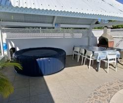 À l’extérieur, une terrasse avec vue mer et montagne prolonge agréablement les espaces de vie. La piscine, accompagnée de sa douche extérieure, ainsi que le coin repas couvert, sont parfaits pour profiter des moments de détente en famille ou entre amis.