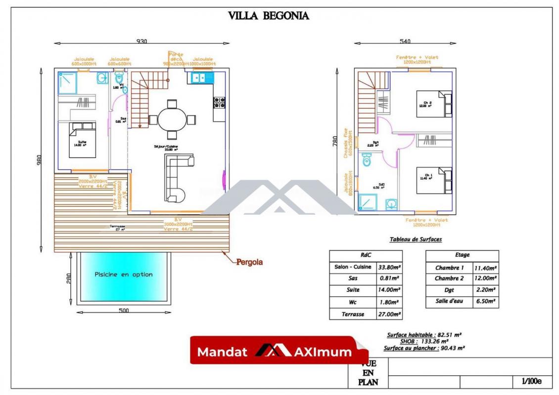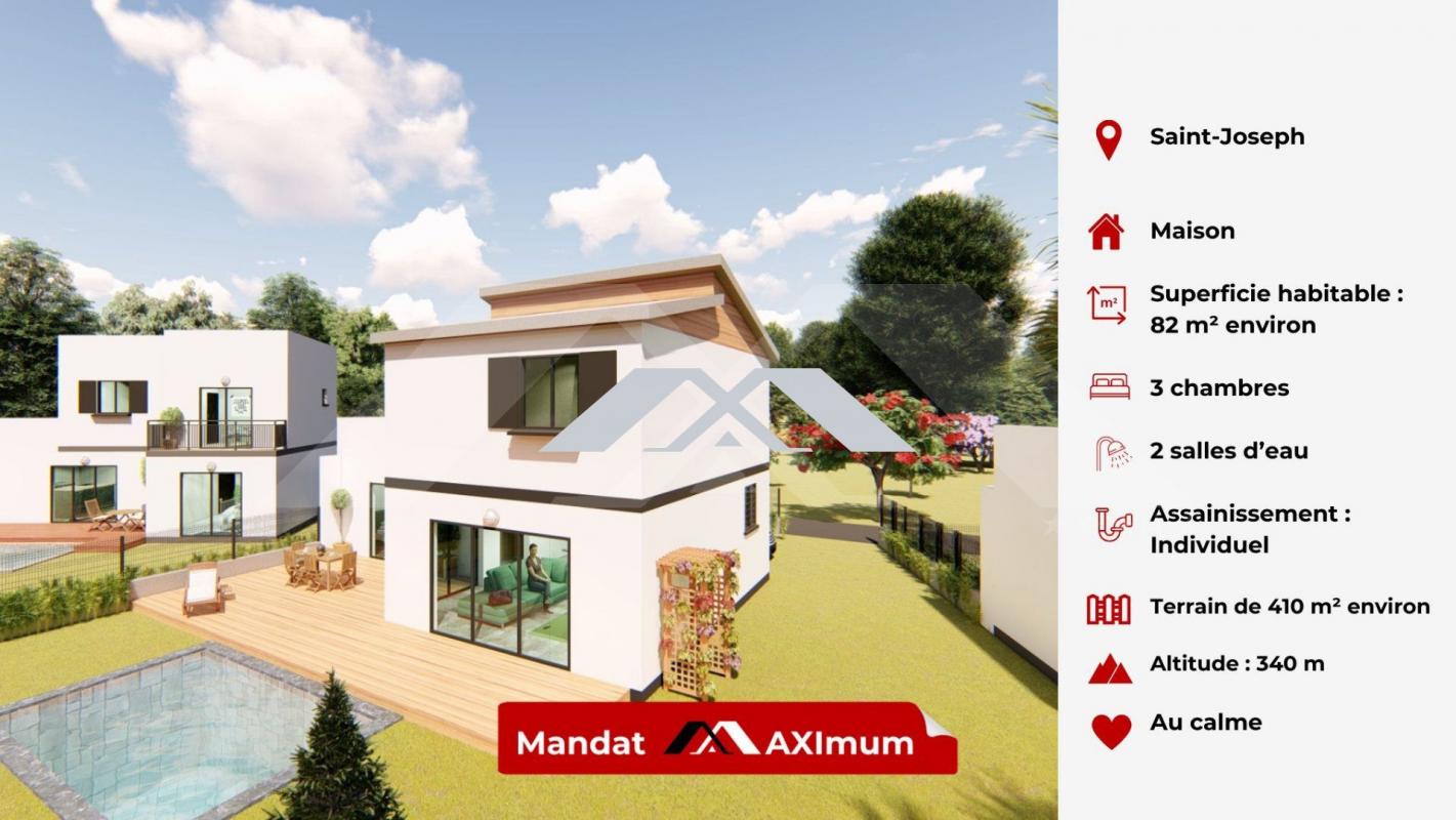 MAXImmo vous propose en exclusivité cette villa neuve d'environ 82 m², sur une parcelle bornée et clôturée d'environ 410 m². Programme JADE Villa BEGONIA Étage ou plain pied à votre convenance. 7 autres modèles de maisons possibles, modifiables ou vous pouvez choisir votre constructeur. Tous les terrains sont piscinables (en option) Assainissement individuel Magnifique vue mer Livraison 2026 11 lots disponibles de 320 à 450 m² bornés, situés à environ 340m d'altitude sur le secteur de Saint Joseph. 12 minutes du Leclerc Terrasse. 10 Minutes des écoles. Au rez de chaussée la cuisine ouverte sur le séjour vous offre un espace d'environ 34 m² attenant à une terrasse couverte de 27 m². Une suite parentale de 14 m² complète cet espace. A l'étage 2 chambres, ainsi qu'une salle d'eau avec wc. Honoraires TTC charge vendeur Mandat n° 12031 Réseau MAXImmo - Pour plus de renseignements contactez Marc.D au 06 93 63 38 27 ou par mail à [email protected] OU Evelyne au 06 93 62 55 07 ou par mail à [email protected] Plus d'informations et consultation de nos tarifs sur www.maximmo.re Les informations sur les risques auxquels ce bien est exposé sont disponibles sur le site Géorisques : www.georisques.gouv.fr' Honoraires à la charge du vendeur. Non soumis au DPE. Les informations sur les risques auxquels ce bien est exposé sont disponibles sur le site Géorisques : georisques.gouv.fr. Votre conseiller MAXImmo : Marc DENQUIN Agent commercial (Entreprise individuelle)