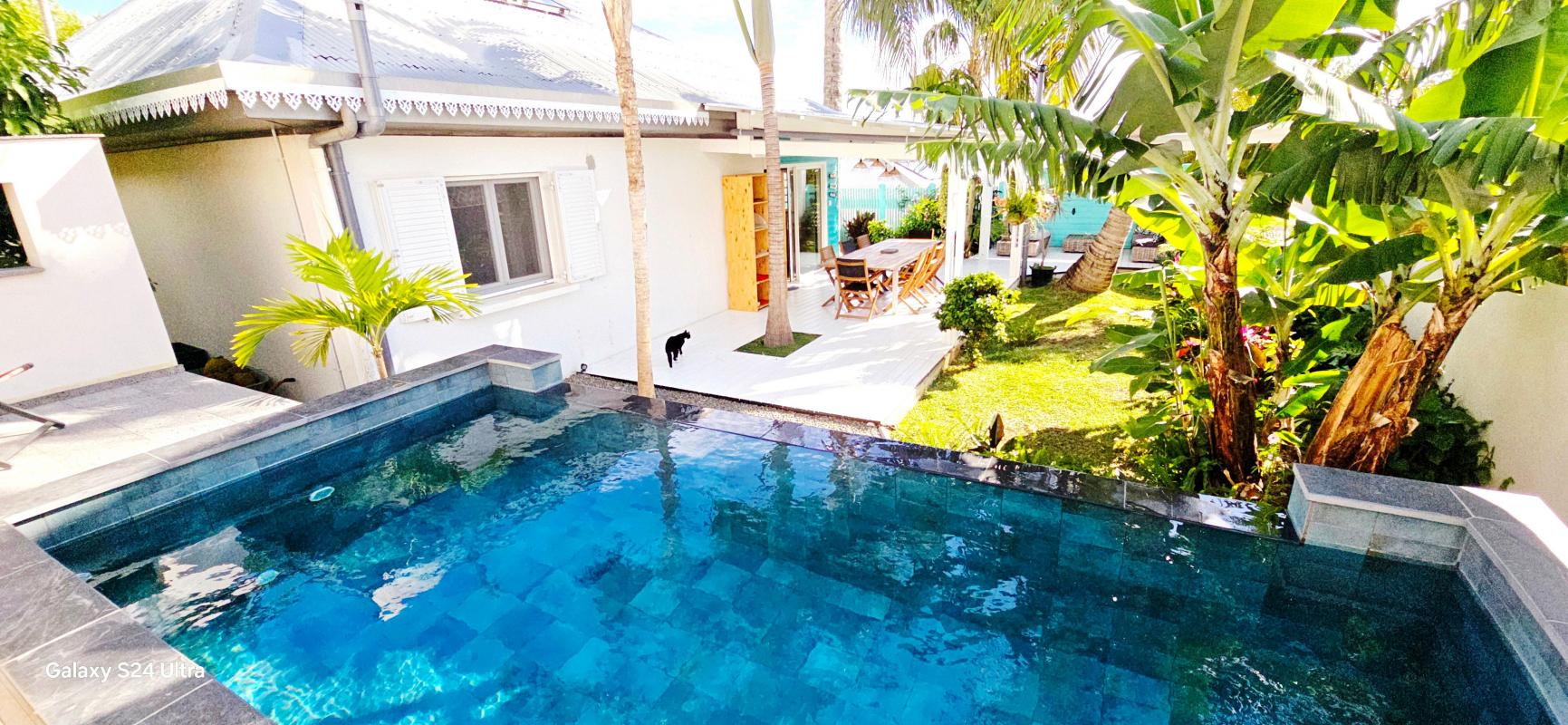 Villa d'exception à vendre à Piton Saint-Leu, 130 m² en parfait état. Idéale pour une famille, elle offre 4 chambres (dont une suite parentale), un séjour lumineux de 43 m2, grande terrasse couverte, jardin paysager et piscine à débordement. Stationnement facile avec place intérieure (garage fermé 30 m2) et extérieures. Emplacement calme et recherché, proche commerces et services. A quelques minutes de la zone portail et la 4 voies Contactez-nous pour visiter cette maison coup de cœur. Référence agence : 6520