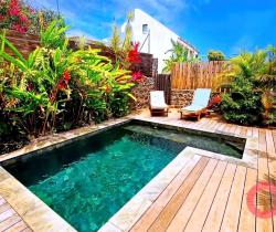 Dans le secteur recherché de STELLA, en fond d'impasse et au calme sur une parcelle d'environ 500 m², maison entièrement rénovée en 2024 (pas de travaux à prévoir et prestations de qualité). Ce bien sur deux niveaux avec deux entrees indépendantes, se compose sur la partie haute de 3 chambres (climatisées), salle de bains et WC indépendant, ainsi qu'une belle pièce de vie lumineuse donnant sur une terrasse spacieuse avec vue mer. Sur la partie basse la maison possède également deux appartements de type 2 (climatisés), entièrement équipés et vendus meublé avec terrasses privatives. Visites virtuelles. https://my.matterport.com/show/?m=CFMqx3m8Xb9 https://my.matterport.com/show/?m=PjPG7sWmodn Sa terrasse couverte, son jardin tropical et sa piscine en pierre naturelle (pompe à chaleur) chauffée seront également vous séduire. Une installation photovoltaïque solaire pour plus de confort et d'économie est également présente. Ce bien de part sa configuration convient à tout type de projet que ce soit familial ou d'investissement. Prix demandé : 695 000 €. Contactez-nous pour une visite. Référence agence : 6485