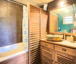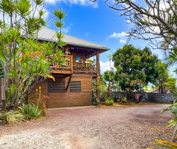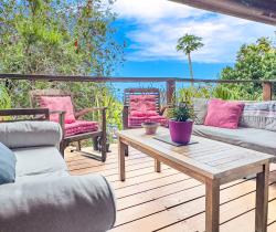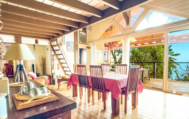 À l’étage, un vaste séjour baigné de lumière se prolonge sur une cuisine équipée et une varangue offrant une superbe vue dégagée sur l’océan. Trois chambres, dont deux suites parentales avec salle de bains privative, ainsi qu’une mezzanine complètent ce niveau confortable et fonctionnel.
