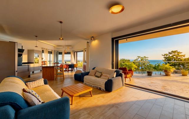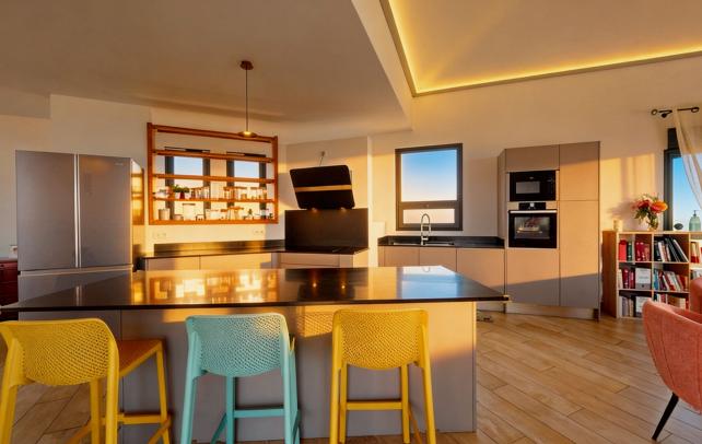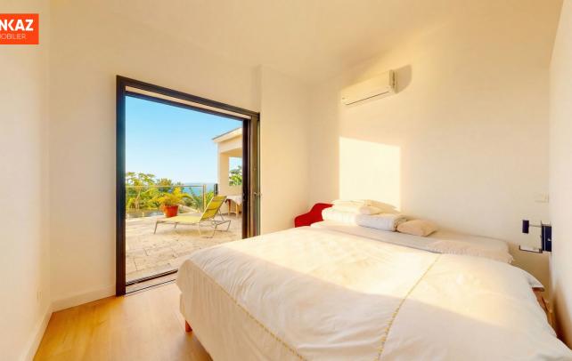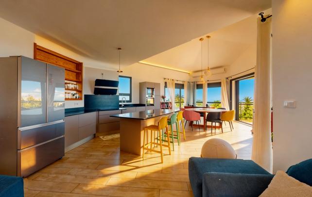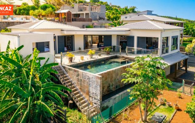 Villa vue mer, studio indépendant, Piton Saint-Leu La maison a été pensée pour profiter au maximum de l'horizon et de la vue sur l'océan. 159 m² sur 760 m² de terrain, construits en 2018. Le séjour-cuisine de 75m² s'ouvre en grand sur une varangue de 20 m² et sur la piscine à débordement. Deux chambres avec accès terrasse direct, chacune avec sa salle de bains. Dressing sur mesure dans la suite principale. En contrebas, un studio de 35 m² - kitchenette, salle d'eau, terrasse bois, accès séparé possible. Location ou dépendance familiale. Cuisine extérieure couverte de 14 m², pleinement équipée. Jardin avec fruitiers, murs en basalte, portail électrique, parking bétonné. Le Piton Saint-Leu : les plages à 10 minutes, la fraîcheur en prime, Saint-Pierre à 20 minutes par la route des Tamarins. Honoraires à la charge exclusive du vendeur. Prix : 697 000 Euro - Réf. 109620 Les informations sur les risques auxquels ce bien est exposé sont disponibles sur le site Géorisques : www.georisques.gouv.fr +262 262 490 490