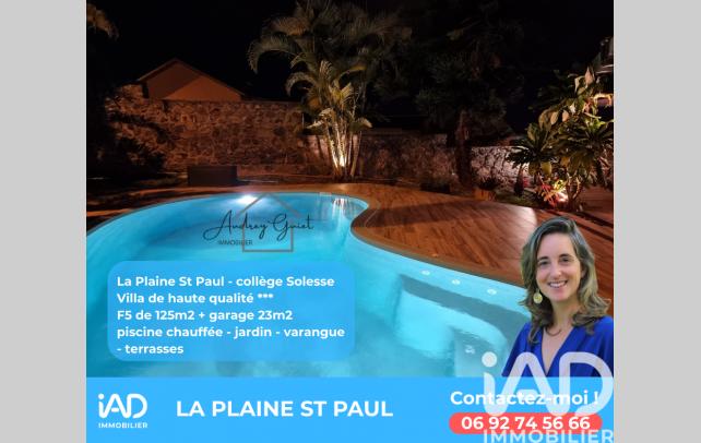 iad France - Audrey Guiet vous propose: MAGNIFIQUE VILLA F5/6 de 125m² avec grande piscine chauffée sur une parcelle de 636m² - LA PLAINE ST PAUL - Surface utile + de 180m2 - BELLES PRESTATIONS - Idéalement située pour une FAMILLE - Proche Collège Jules Solesse - 320m d'altitude