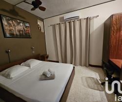 -Au rez-de-chaussée ( environ 100 m²) : un vaste séjour avec coin cuisine, trois chambres disposant chacune de leur salle d’eau, et une spacieuse varangue donnant sur la grande piscine en pierres naturelles.