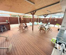 Le séjour s’ouvre sur une vaste terrasse couverte de plus de 60 m², parfaite pour recevoir ou profiter de moments de détente en famille. Cet espace extérieur offre également un potentiel piscinable, vous permettant de créer votre propre oasis à l’abri des intempéries.